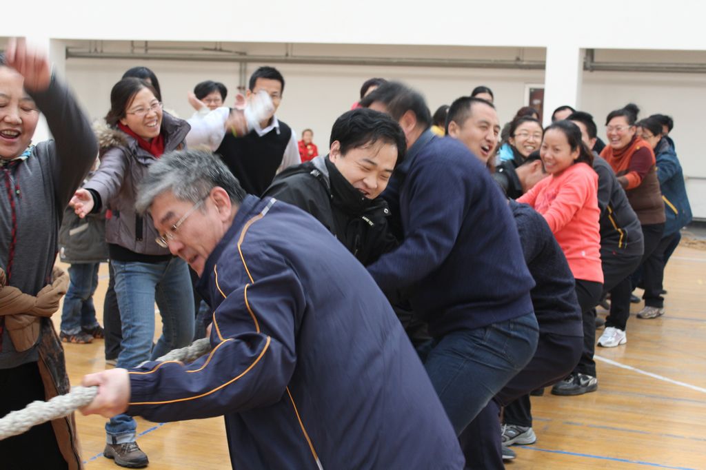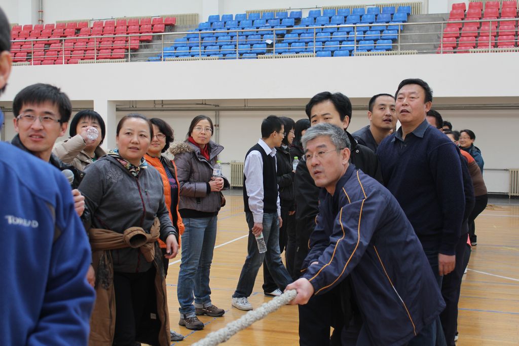 党委书记邬旭然老师、生命科学学院党总支书记郭承华老师分别致辞。希望大家比出友谊、赛出风采。裁判宣布完规则后,比赛正式开始。老师们一改往日严谨治学、温文尔雅的形象,有时犹如一群青春少年,你争我抢、加油助威;有时又如一个个孩子般“斤斤计较”、欢呼雀跃。趣味接力是最热闹的游戏之一,老师们为了争取更好的成绩,也不惜使用“作弊”等手段蒙混过关,被裁判不断罚分,引得大家笑声不断。玩儿转三大球和跳大绳主要比拼的是大家的技巧性和配合默契程度,由此能看出老师们所擅长的项目和平日的锻炼成果。最后的拔河比赛将此次趣味运动会引向高潮,两个院势均力敌的较量让全场沸腾起来,无论是比赛的还是助威的,都倾尽全力为自己的学院争得荣誉。最后的挑战项目兼备趣味性和技术性,让每个老师都有机会通过挑战获得小奖品。比赛结束后,每个老师都有不同的收获,并对此次比赛非常满意,十分开心。